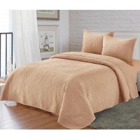 Cuvertură de pat, matlasată, bumbac satinat, 3 piese, pat dublu, 230x250cm, uni, crem închis, CVB303