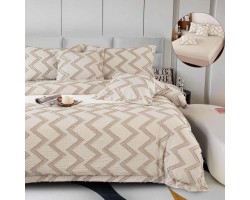 Lenjerie de pat Premium Gofrată, 2 persoane, 6 piese, cu elastic, crem închis, linii zig-zag, LFG106